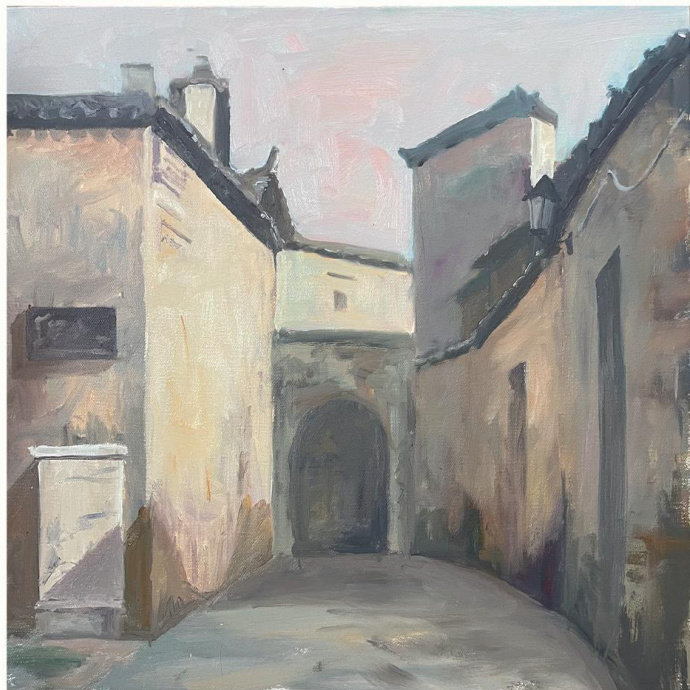 《徽巷寻幽》60cm×60cm2024年 《暖巷余晖》 50cm×70cm 2025年 《太行山·峡谷》50cm×60cm2025年 《桥影浦舟》50cm × 70cm 2025年 王月垚,女,2005年生,河南郑州人,郑州大学美术学院本科在读,研究方向:油画写实。