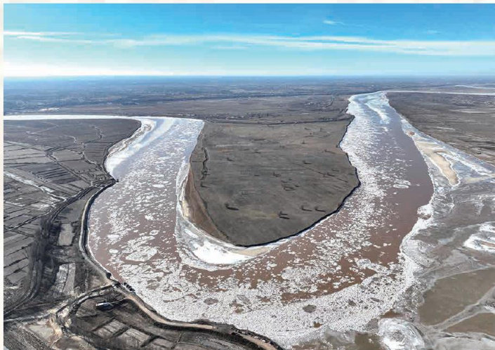 冬日暖阳,铺洒在广袤的黄河三角洲。大河息壤之处,一曲人与自然和谐共生的新时代恢宏乐章正在奏响。刚刚竣工的黄河下游“十四五”防洪工程北大堤,静卧于渤海之滨,守护着黄河安流入海的“最后一公里”。堤坝两侧,数以十万计的候鸟集群翱翔,在一望无垠的湿地上空形成壮观的“鸟浪”景象。裹挟着黄土高原泥沙的黄河水奔流入海,与蔚蓝的海水交汇碰撞,形成了“黄蓝交汇”奇观。俯瞰黄河三角洲,芦花似雪,柽柳叠霞,碱蓬铺锦,织