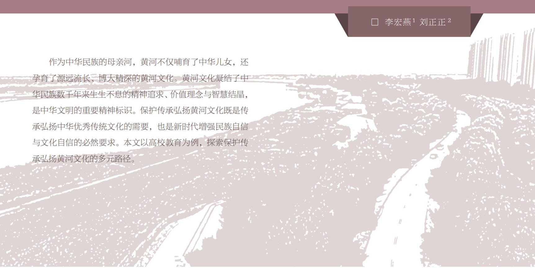 保护传承弘扬黄河文化的价值 筑牢中华文明的“根”与“魂” 作为中华民族的精神源泉之一,黄河文化深植于民族精神的沃土之中,承载着中华民族5000多年的文化基因、价值取向与集体记忆,是中华民族麝续发展的力量之源与灵魂之根。黄河文化中蕴含的自强不息、开放包容、开拓创新等精神特质,与社会主义核心价值观高度契合。在高校中保护传承弘扬黄河文化,其首要目的在于引导学生完成一场深刻的文化寻根与精神濒源之旅