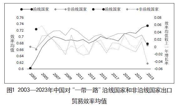 摘 要:本文选取2003—2023年中国与60个“一带一路”沿线及非沿线样本国家的出口贸易面板数据,构建随机前沿引力模型测算出口贸易效率,并运用双重差分法系统考察“一带一路”倡议对中国出口贸易效率的影响及作用机制。研究发现:(1)“一带一路”倡议的实施,显著提升了中国对沿线国家的出口贸易效率水平,特别是对高收入、中高收入国家及高经济自由度国家的促进作用更为显著。(2)机制检验揭示出,倡议通过“五通