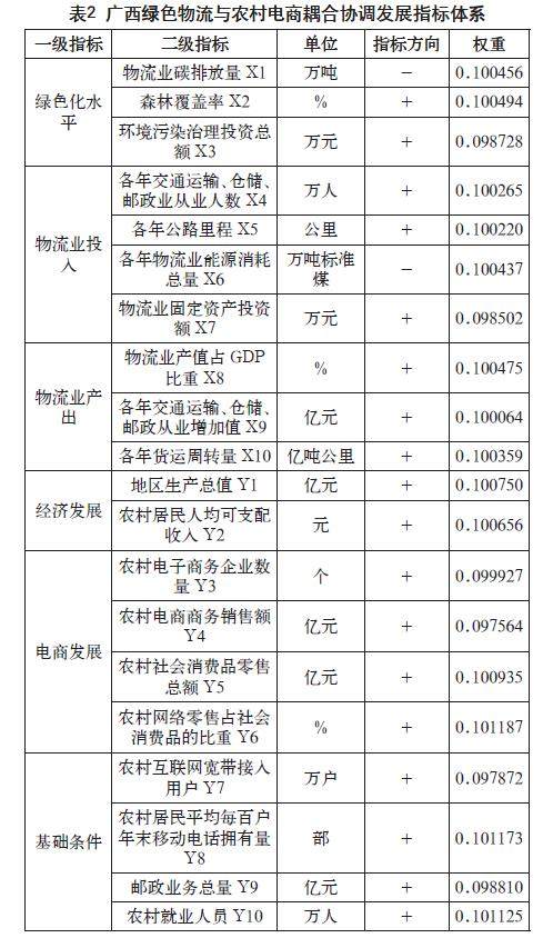 摘 要:在我国积极推进“双碳”战略背景下,绿色物流与农村电商的协调发展已成为农村经济可持续发展的核心路径。本文构建广西绿色物流与农村电商两大指标体系,深入探究两者的耦合协调关系,通过收集2014—2023年的相关指标数据,运用熵值法确定各指标权重,并借助耦合协调度模型展开实证分析。结果显示,2014—2023年,广西绿色物流与农村电商的耦合协调度整体呈上升态势,从2014年濒临失调逐步发展为良好协