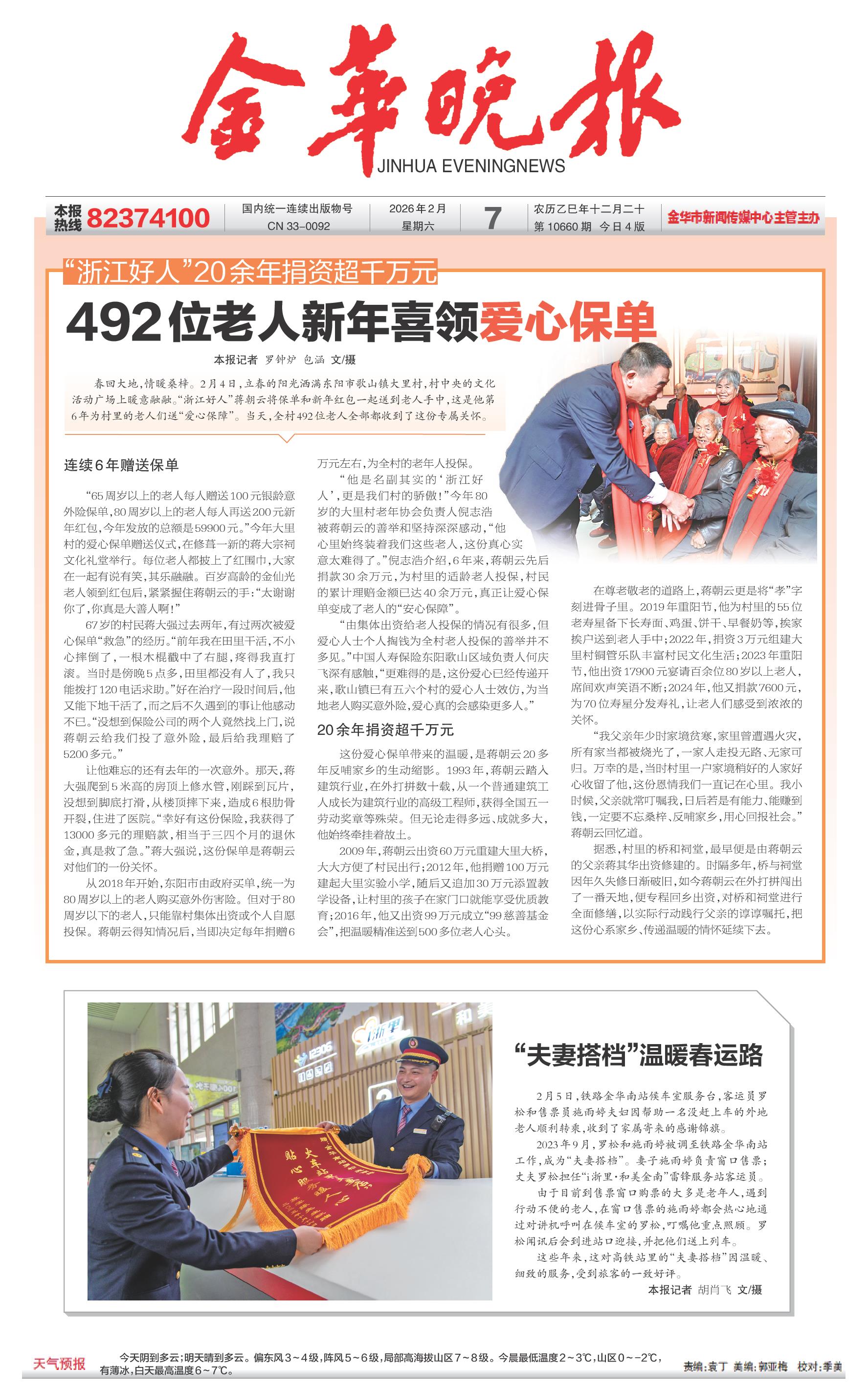 头版 | 492位老人新年喜领爱心保单