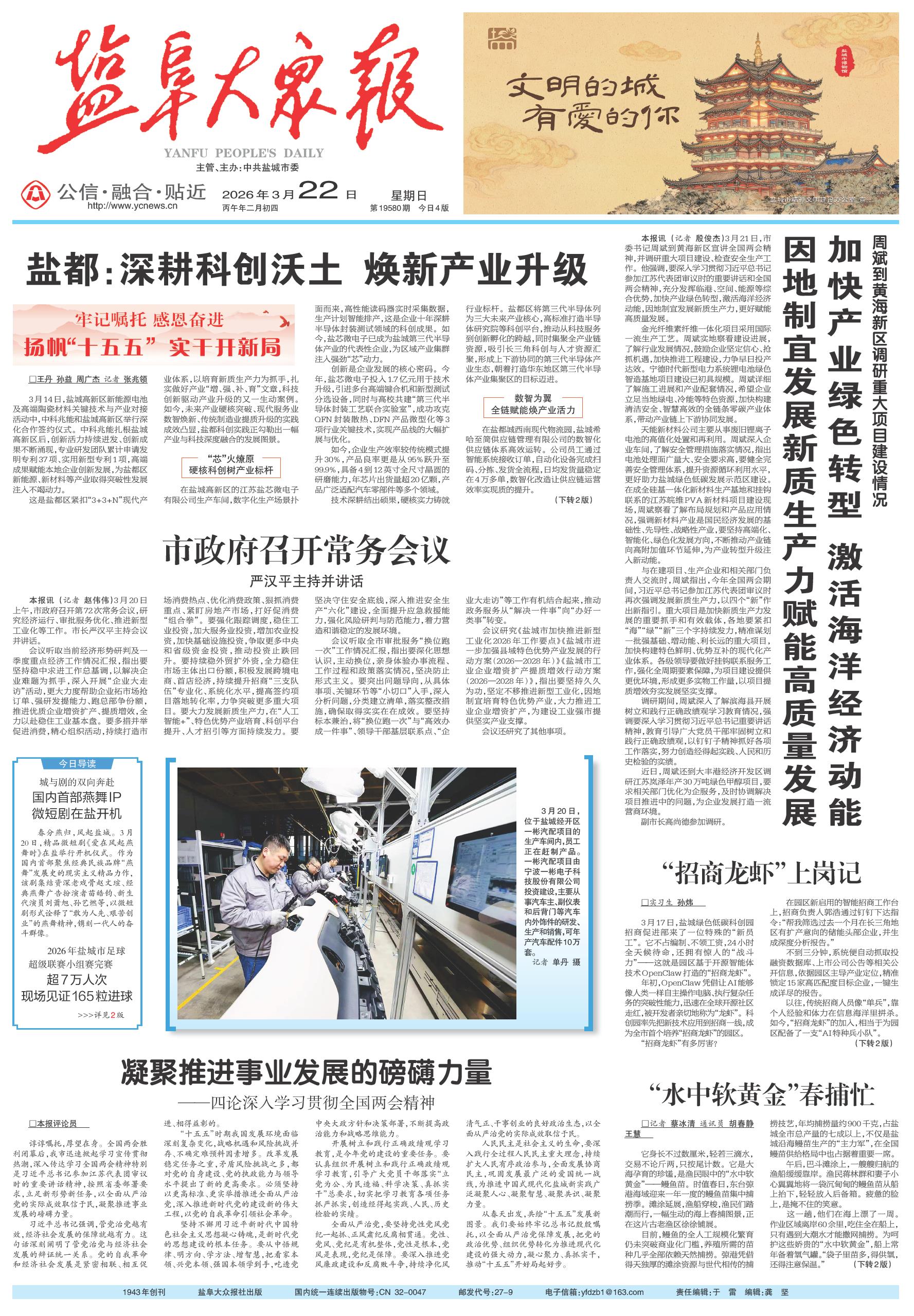 头版 | 盐都:深耕科创沃土 焕新产业升级